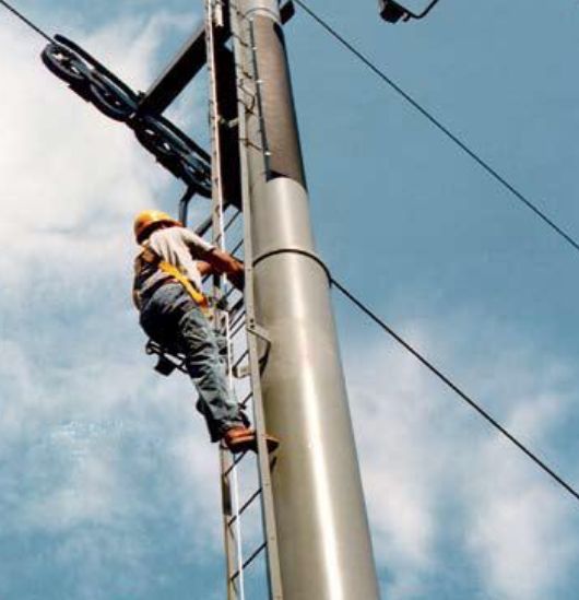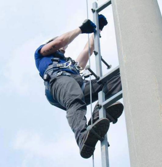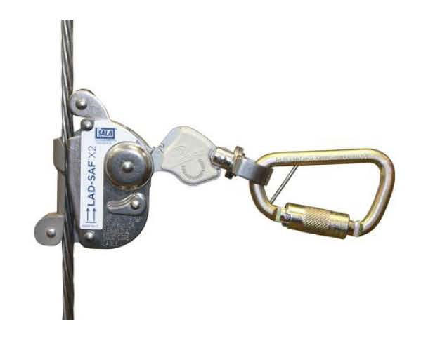 Lad-Safは、安全に対する意識の高い欧米をはじめ、世界各地の梯子にワイヤーを設置し、そのワイヤーをスライドするケーブルスリーブを作業者のフルハーネスに接続し墜落を防ぎます。